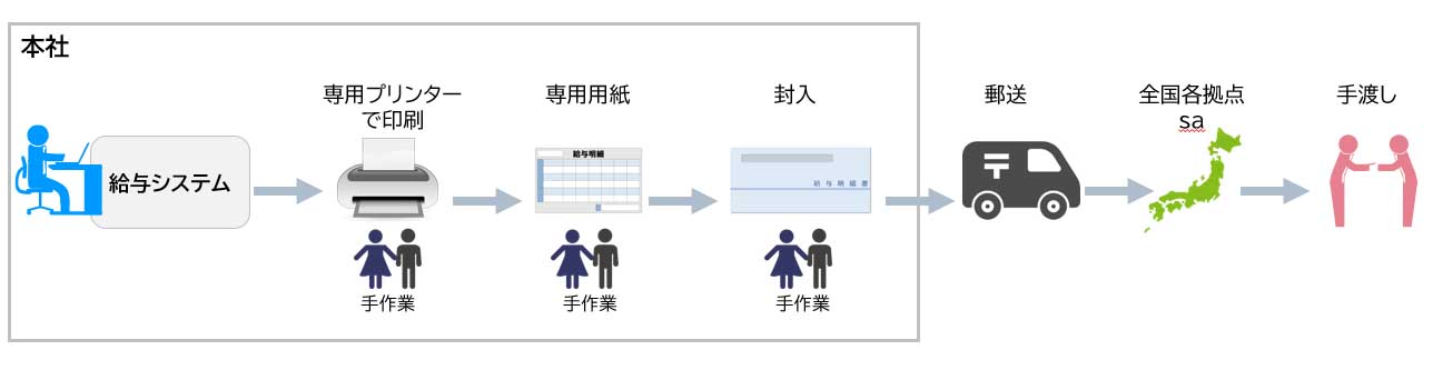 ✔ 給与明細の送付を、紙(専用用紙)からデジタルへ切り替え、「ペーパーレス」を実現する。
